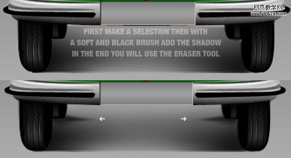 用筆刷工具和橡皮擦工具為在車底加上陰影。