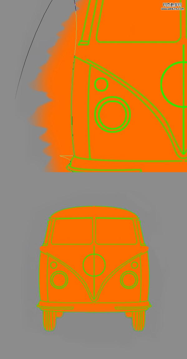 現在你要用鋼筆工具(p)將多余的顏色擦掉。用鋼筆工具在車的周邊創建一個路徑,簡單地按一下ctrl+回車鍵就能建立選取,最后按下delete