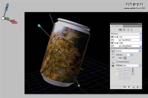 更為夸張的是,photoshop cs4特別提供了3d面板,在該面板中,你可以通過眾多的參數來控制、添加、修改場景、燈光、網格、材質等。