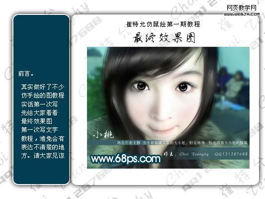 本教程作者的過程寫得比較概括,不過思路都寫出來了。如果想學(xué)的可以根據(jù)作者的思路慢慢去完成效果
