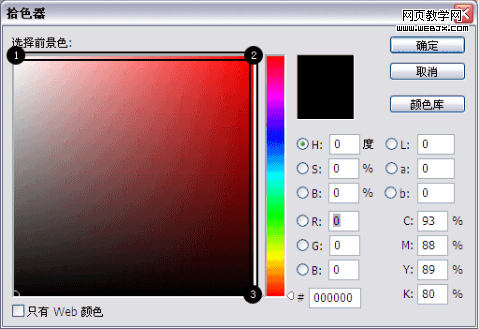 這里有一點(diǎn)要說(shuō)明的是:當(dāng)我們?cè)谧鲱伾倪x擇時(shí),要盡量用拾色器橫坐標(biāo)頂端和縱坐標(biāo)右端的顏色值,看下圖我用黑色框框標(biāo)出來(lái)的,經(jīng)過(guò)的我的實(shí)驗(yàn)得出,只有這有這樣二點(diǎn)選出的顏色才會(huì)均勻的分配在色盤(pán)上,如果要從1過(guò)渡到3,中間一定要有一個(gè)2來(lái)定位顏色,不然顏色就會(huì)亂,這一點(diǎn)大家可以自己做實(shí)踐,當(dāng)時(shí)如果有更好的方式,我也希望請(qǐng)教一下大家。