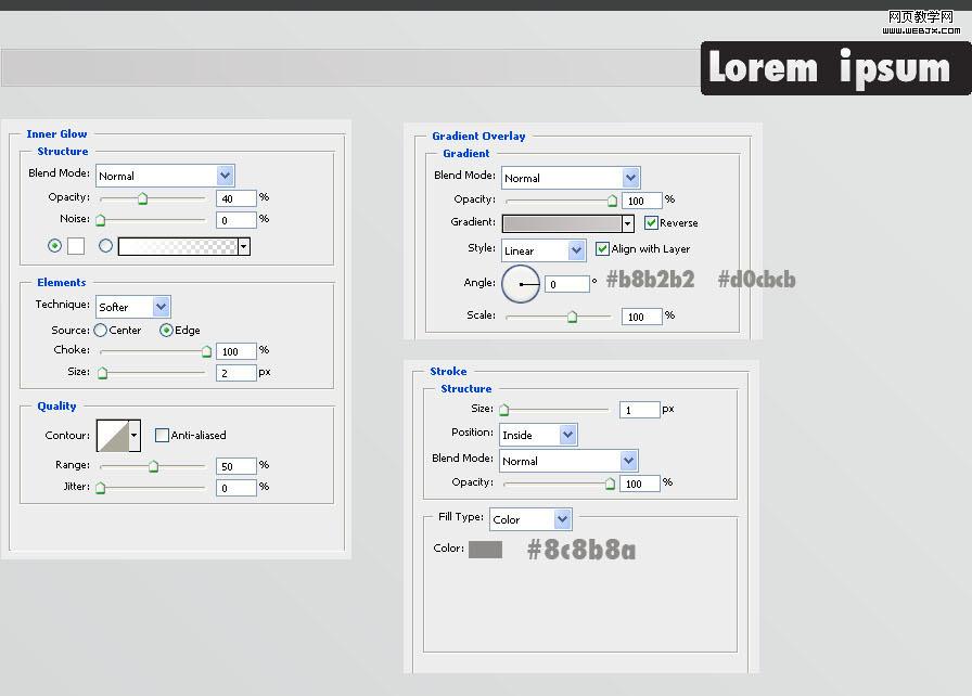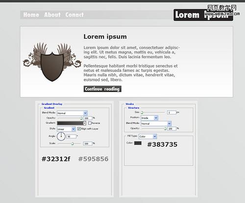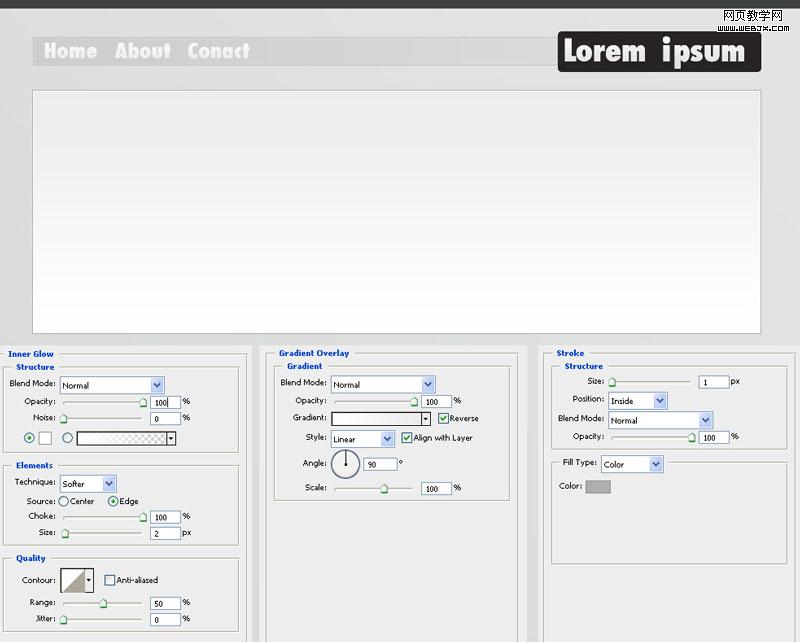 12)create a new folder and name it sidebar. create a new layer, make a selection for the sidebar, fill it with the color #e5e5e5 and add the same layer styles you added at the step 10.
