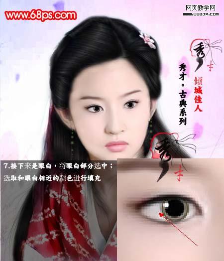 7、接下來是眼白,將眼白部分選中,選取和眼白相近的顏色進行填充。