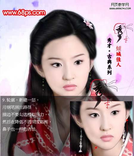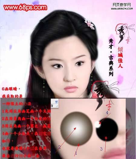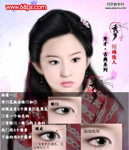 8、用鋼筆畫出路徑如下圖,開始制作雙眼皮,方法如下圖所示。