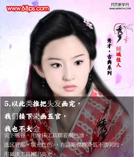 5、以此類推,把頭發畫完,我們接下來畫五官。