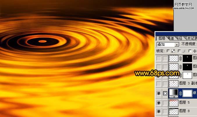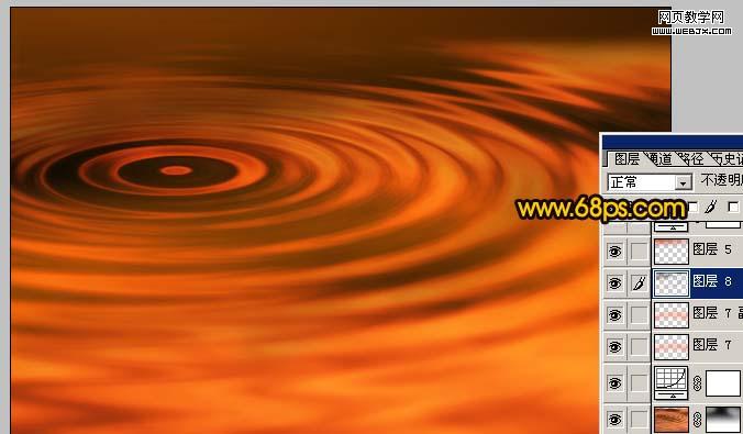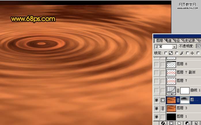 <圖7> 6、把做好的水波圖層復制一層,對副本執行:濾鏡 > 模糊 > 高斯模糊,數值為6,確定后加上圖層蒙版,用黑色畫筆把水波的中心位置擦出來,再把圖層不透明度改為:80%,效果如圖8。