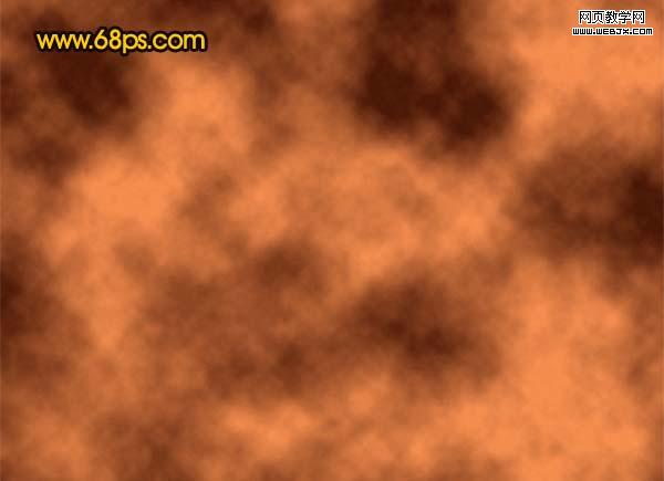 | 1、新建一個壁紙大小的文件,可以選擇自己屏幕大小(如1024 * 768 像素)。把背景填充黑色。 2、把前景顏色設置為:#f58d4e,背景顏色設置為:#481706,新建一個圖層,執行:濾鏡 > 渲染 > 云彩,確定后按ctrl + alt + f加強一下,效果如圖1。 |