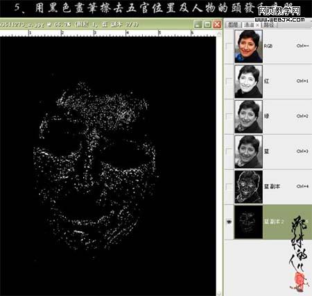 5、用黑色畫筆擦去五官位置及人物的頭發和衣服。
