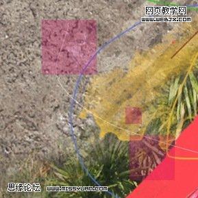 11、選擇熱帶雨林圖層,按alt點擊圖層板下面的蒙板圖標,建立一個黑色蒙板隱去雨林圖片。改變前景色為白色,點擊黑色蒙板圖標,用硬度為0%,直徑為100像素的筆刷在鸚鵡周圍涂抹出一些植物,這一步只是在鸚鵡背部周圍涂出一點就行。