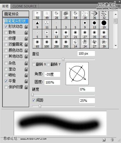 5、現在調整筆刷的硬度為0%,這樣可使羽毛看上去柔軟。