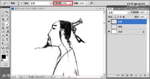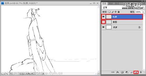 <圖3> 4、按組合鍵ctrl+shift+n創(chuàng)建新圖層并命名為:輪廓,對畫面的輪廓進(jìn)行一步精細(xì)的刻畫,然后單擊“草圖”圖層前面的顯示或隱藏圖層按鈕,效果如圖4所示。