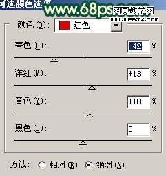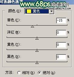 6、創(chuàng)建可選顏色調整圖層,參數(shù)設置如圖13-15,效果如圖16。
