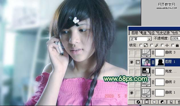 4、再在曲線調整圖層上面創(chuàng)建亮度/對比度調整圖層,參數(shù)設置如圖8,效果如圖9。