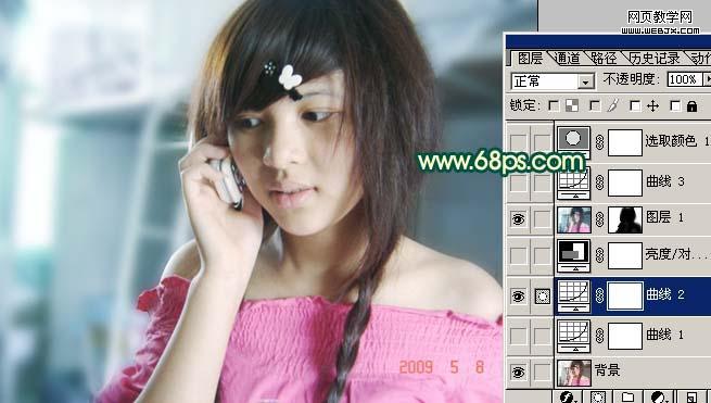 3、把剛才創(chuàng)建的曲線調整圖層隱藏,然后在他上面再創(chuàng)建曲線調整圖層,參數(shù)設置如圖5,6,效果如圖7。
