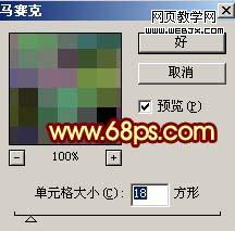 <圖4> 4、執行菜單:濾鏡 > 像素化 > 馬賽克,參數設置如圖5,可以按照實際需要調整格子大小,效果如圖6。到這一步格子部分完成了,不過格子不夠清晰。