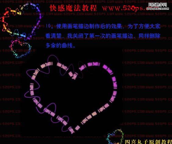 10、使用畫筆描邊制作后的效果,為了方便大家看清楚,我關(guān)閉了第一次的畫筆描邊,同樣刪除多余的曲線。