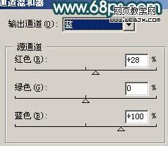 | 9、創建通道混合器調整圖層,對藍色進行調整,參數設置如圖15,效果如圖16。 |