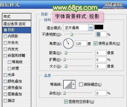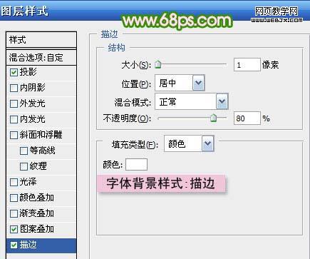 6、按住ctrl鍵的同時單擊字體的圖層再次載入文字層的選區,選擇-修改-擴展,將文字的選區擴展5個像素。在文字層的下方新建一層,取名為字體-背景,將選區填充為白色。填充度更改為25%,設置圖層樣式如圖。