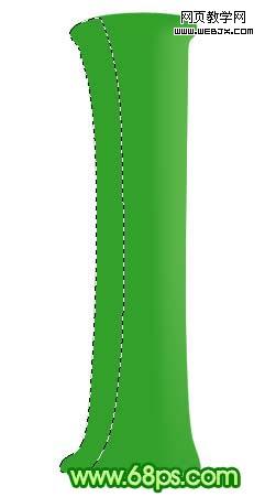 | 1、新建一個1024 * 768像素文件,新建一個圖層開始制作竹節。先用鋼筆工具勾出圖1所示路徑,轉為選區,填充顏色:#34a12a,取消選區后效果如圖2。 |