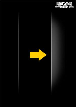12、創(chuàng)建新畫布,背景設(shè)為黑色,創(chuàng)建新圖層,使用鉛筆工具繪制1px的白色直線,并用柔角橡皮擦工具處理直線的兩端。創(chuàng)建新圖層,選擇柔角筆刷工具,將筆刷不透明度設(shè)為50%,沿直線涂抹畫布,使用橡皮擦工具將直線左側(cè)的部分擦除得到如下效果。