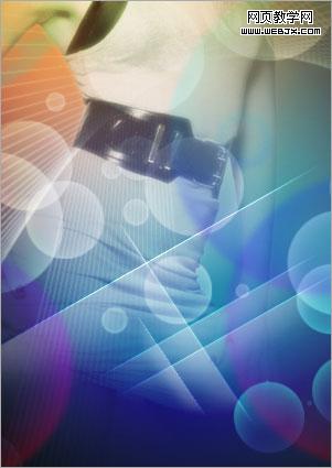 13、將上述帶光暈的直線拖入畫布,并復(fù)制多次,調(diào)整不同的位置和方向。下載放射線條筆刷,在人像層下方創(chuàng)建新圖層,并使用筆刷添加放射線條效果。