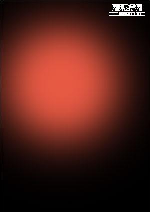 | 1、創(chuàng)建畫布,并用黑色填充背景。創(chuàng)建新圖層,將前景色設(shè)為#e65943,選擇650px的柔角筆刷繪制如下光球。 |