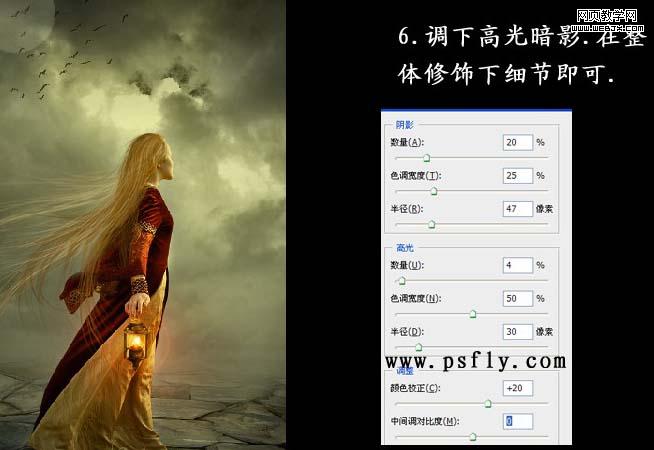 6、調下高光暗影參數設置如下圖,確定后再整體修飾下細節,完成最終效果。