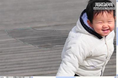 | 1、觀察照片,最有可能出現大面積仿制源的位置應該是在左側,但陰影造成了一些麻煩。首先使用“多邊形套索工具”粗略選擇左側陰影,靠近衣服的地方要仔細一些。如圖3所示。 |