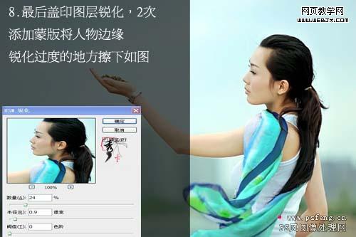 8、新建一個圖層,按ctrl + alt + shift + e蓋印圖層,適當?shù)匿J化一下(可以用usm銳化,也可以使用其它銳化濾鏡外掛),然后修飾下細節(jié),完成最終效果。