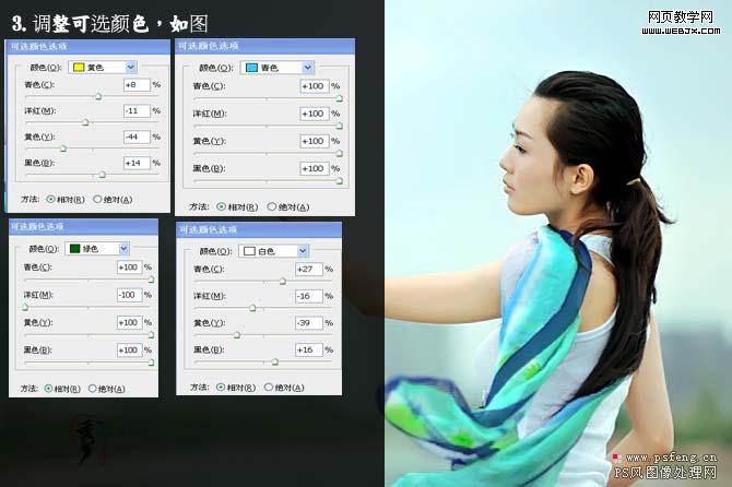 6、創(chuàng)建可選顏色調(diào)整圖層,參數(shù)設置如下圖。