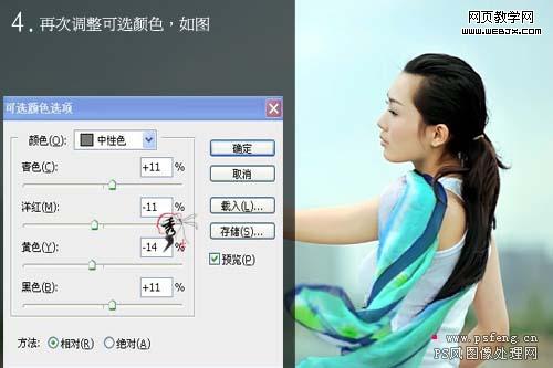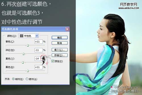 4、再次創(chuàng)建可選顏色調(diào)整圖層,對中性色進行調(diào)整,參數(shù)設置如下圖。