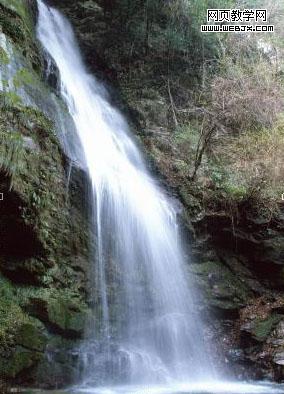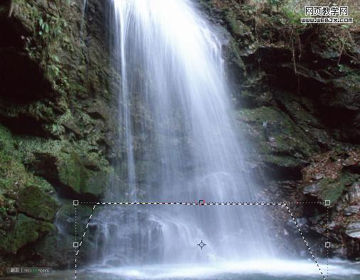 9、打開瀑布素材,使用套索工具選取一塊瀑布。