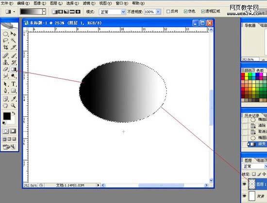 | 1、新建文檔,新建圖層,用橢圓選框工具作橢圓選區(qū),在選區(qū)內(nèi)拉一個(gè)黑白線性漸變。 |