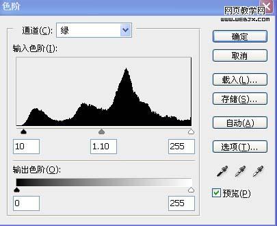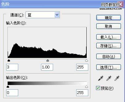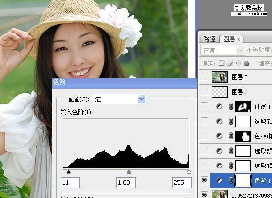 1、打開原圖素材,創建色階調整圖層,對各通道進行調整,參數設置如下圖。