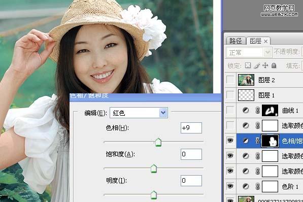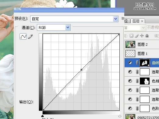 6、創建曲線調整圖層,稍微把照片調亮一點,只保留人物臉部及膚色部分,其它部分用黑色畫筆擦掉,確定后打上裝飾文字,完成最終效果。