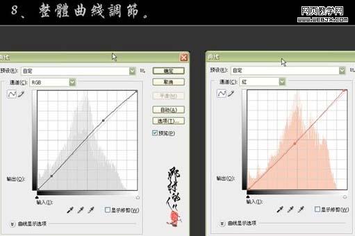 8、再創(chuàng)建曲線調(diào)整圖層,整體調(diào)整下顏色,參數(shù)及效果如下圖。
