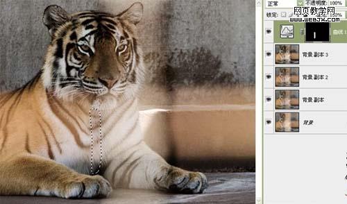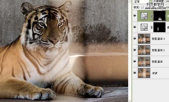 5、用套索工具摳出老虎前腳位置選區(qū),適當(dāng)羽化后,創(chuàng)建曲線調(diào)整圖層,參數(shù)設(shè)置如下圖。