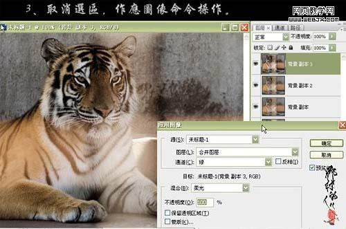 3、取消選區(qū),再進(jìn)行應(yīng)用圖像操作,參數(shù)設(shè)置如下圖。