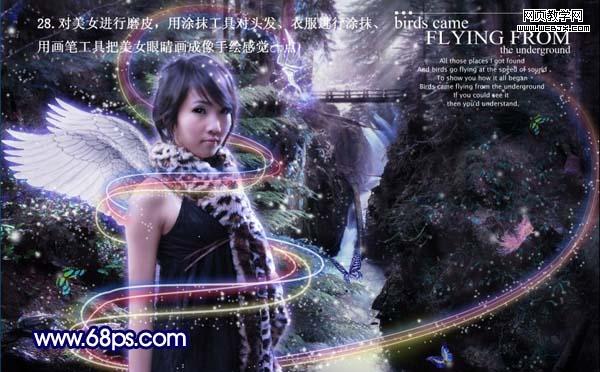 28、對人物進行磨皮,用涂抹工具對頭發、衣服進行涂抹。用畫筆工具把人物眼睛畫成像手繪感覺。