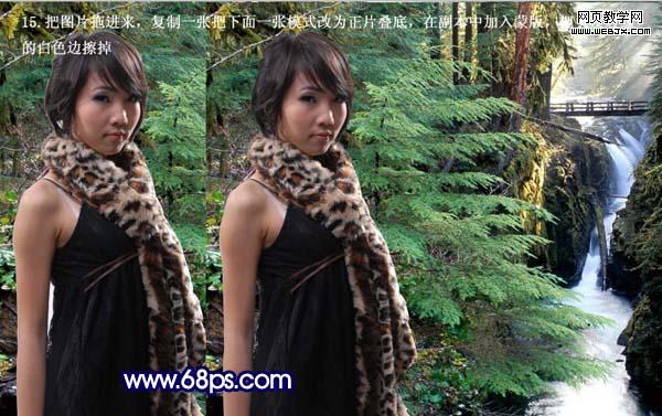 15、把摳好的人物圖片拖進來,復制一張,把下面的一張圖層混合模式改為“正片疊底”,在副本中加上圖層蒙版,用黑色畫筆擦掉頭發邊緣的白邊。