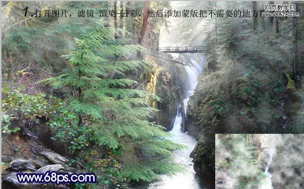 1、打開原圖素材,新建一個圖層執行:濾鏡 > 渲染 > 云彩,確定后把圖層混合模式改為“濾色”,添加圖層蒙版用黑色畫筆把需要的地方擦掉。