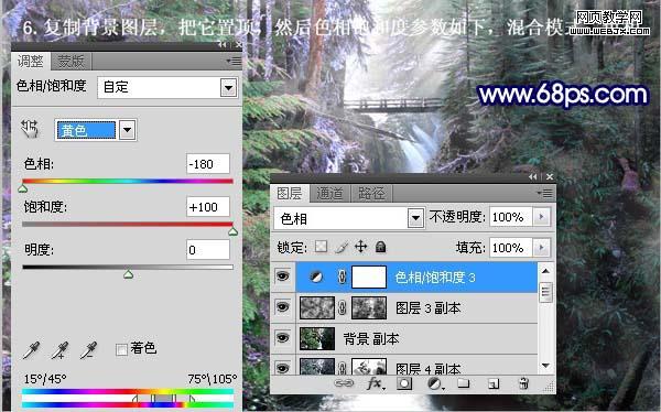 6、把背景圖層復制一層,按ctrl + shift + ] 置頂,然后創建色相/飽和度調整圖層,參數設置如下圖,確定后把圖層混合模式改為“色相”。