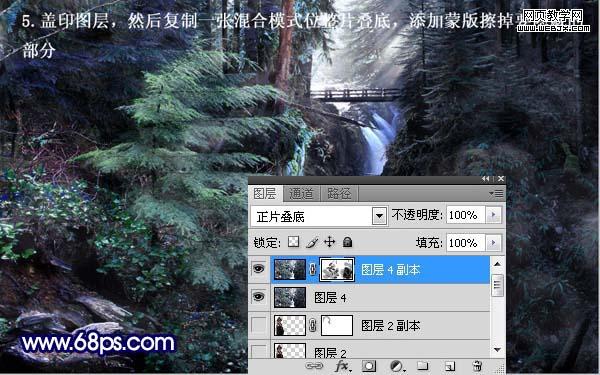 5、新建一個圖層,按ctrl + alt + shift + e蓋印圖層,把蓋印后的圖層復制一層,圖層混合模式改為“正片疊底”,添加圖層蒙版用黑色畫筆擦掉不需要的部位。