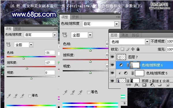 16、把美女和美女副本蓋印一張(ctrl + alt + e),創建色相/飽和度調整圖層,參數設置如下圖。