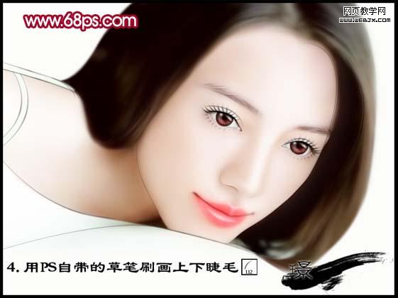 4、新建一個(gè)圖層,用ps自帶的草筆刷畫上睫毛。