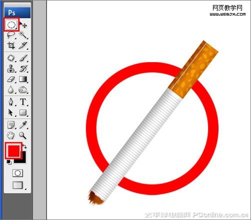 禁煙標志大家都很熟悉,每年的5月31日就是"世界無煙日",所以我們也用photoshop來設計和制作一個禁煙標志,制作過程中點在于香煙的質感的實現,這里我們用到ps中的漸變,加深工具與畫筆等