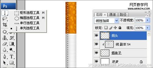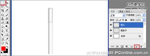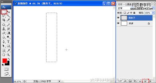 2、在圖層控制面板擊新建圖層按鈕,新建一個“煙身子”,在工具箱中選擇矩形工具 ,在工作區中拖出一個矩形形