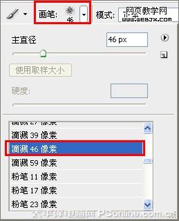 11、選擇工具箱中畫筆工具,在畫筆屬性欄中設置畫筆為滴濺46像素,如圖18所示。