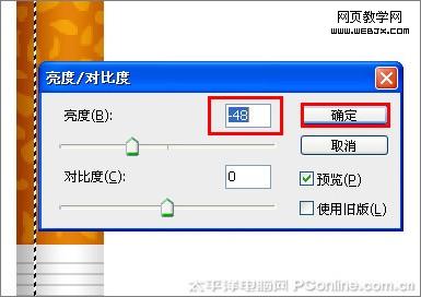 亮度/對比度”菜單,彈出亮度/對比度對話框,設置亮度為+44,然后點擊按鈕,如圖8所示。效果如圖9所示。