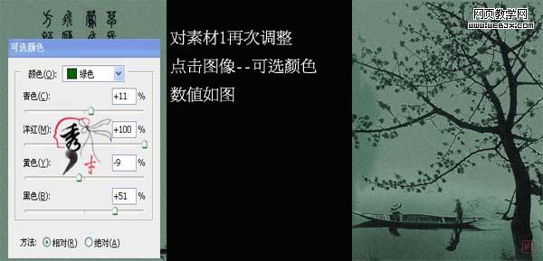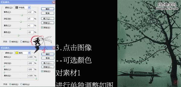 6、對素材2今天可選顏色調(diào)整(圖像 > 調(diào)整 > 可選顏色),參數(shù)設(shè)置如下圖。